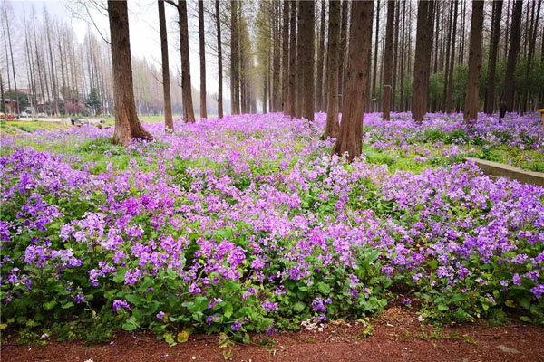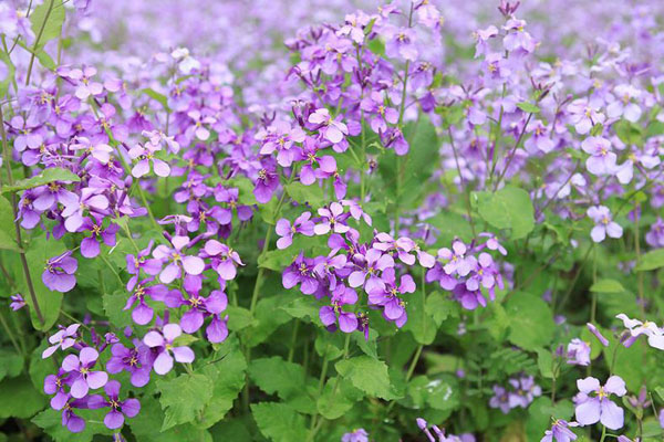 二月蘭對(duì)土壤氣候適應(yīng)能力很強(qiáng),而且只要種植下去一株,一年后會(huì)看到一大片。這是因?yàn)槎绿m有自播的能力,種子成熟后掉落地面,第二年能自動(dòng)發(fā)芽。